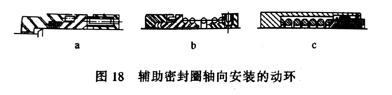 靠輔助密封圈軸向裝置的動環(huán)(圖18),靠彈簧力壓緊密封圈來實(shí)現(xiàn)密封。彈簧力可視為不變化,密封可靠、使用壽命長、安裝較為便利,從而得到廣泛應(yīng)用。