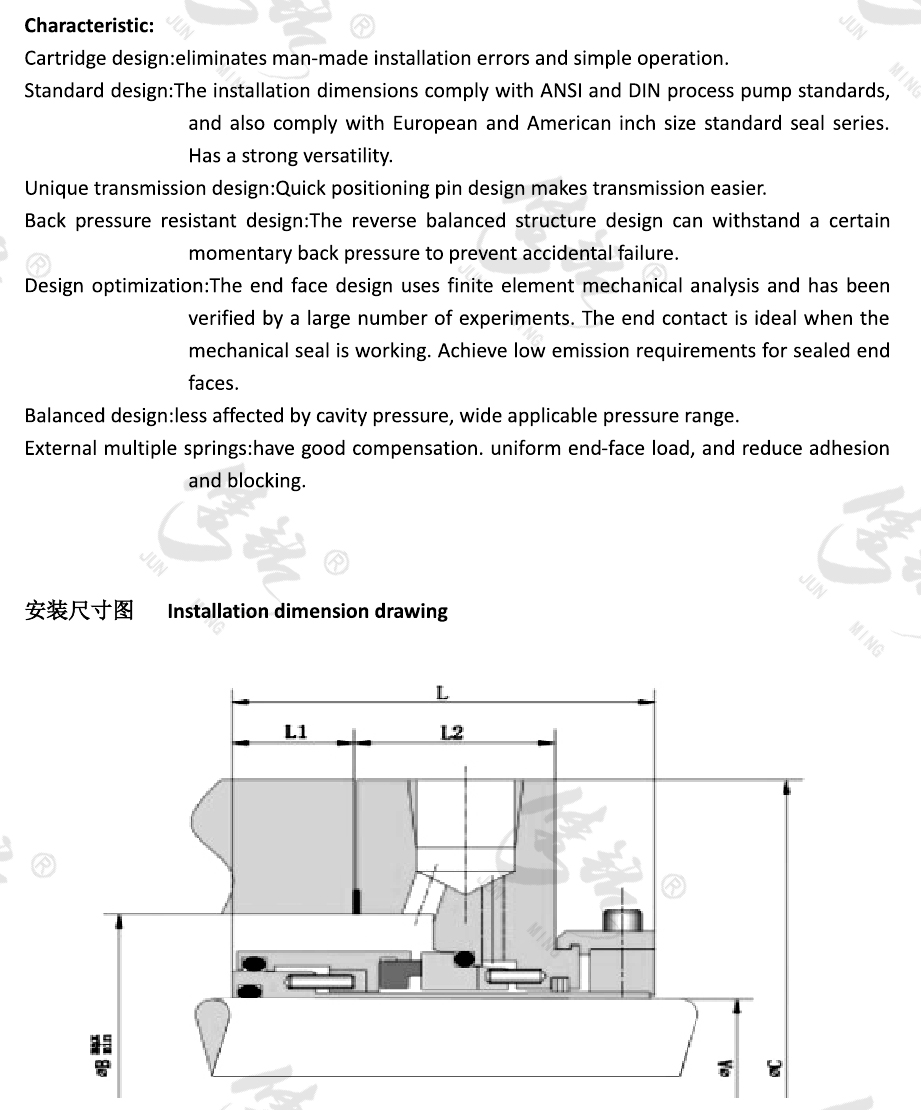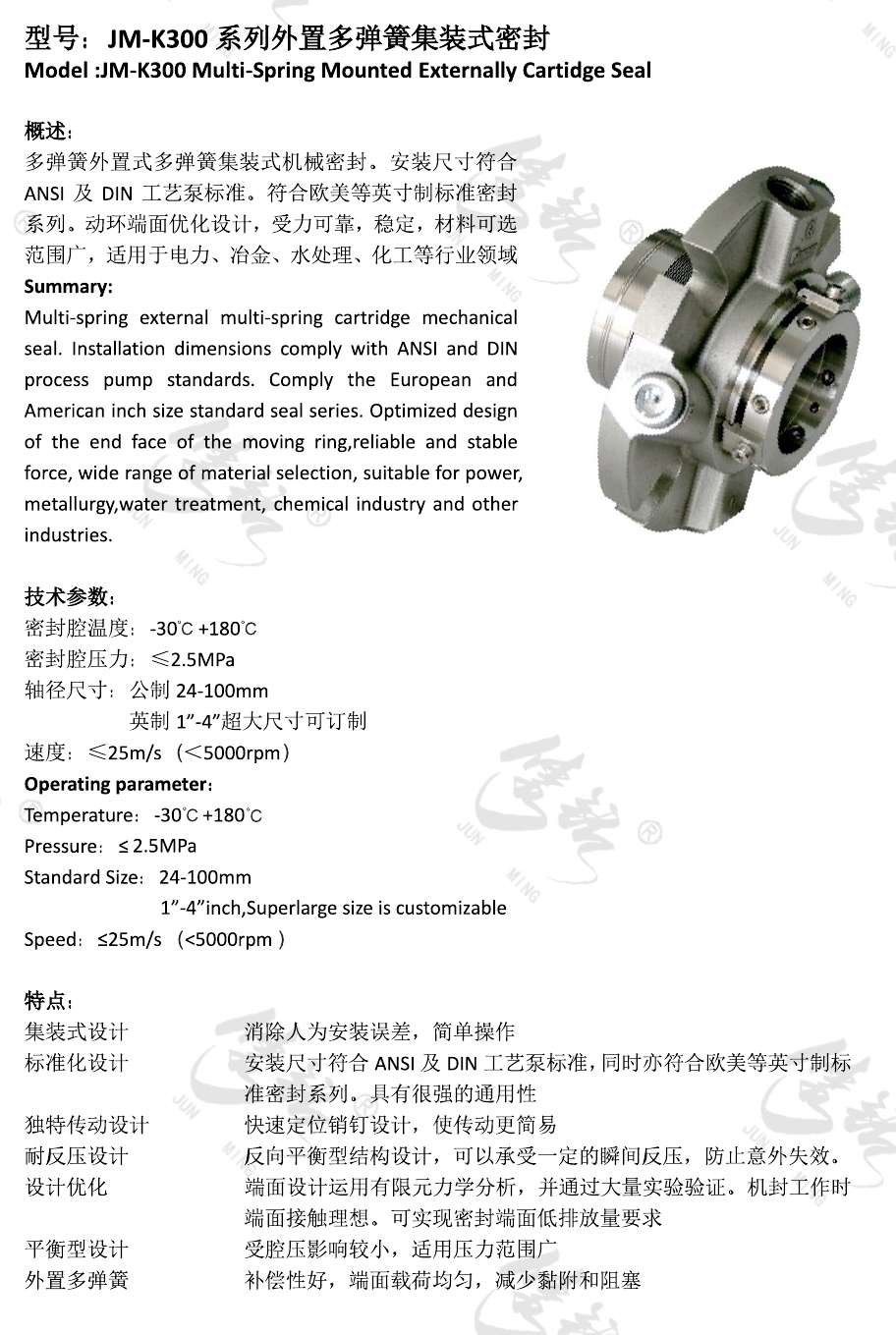 多彈簧外置式多彈簧集裝式機(jī)械密封。安裝尺寸符合ANSI及DIN工藝泵標(biāo)準(zhǔn)。符合歐美等英寸制標(biāo)準(zhǔn)密封系列。動(dòng)環(huán)端面優(yōu)化設(shè)計(jì),受力可靠,穩(wěn)定,材料可選范圍廣,適用于電力、冶金、水處理、化工等行業(yè)領(lǐng)域